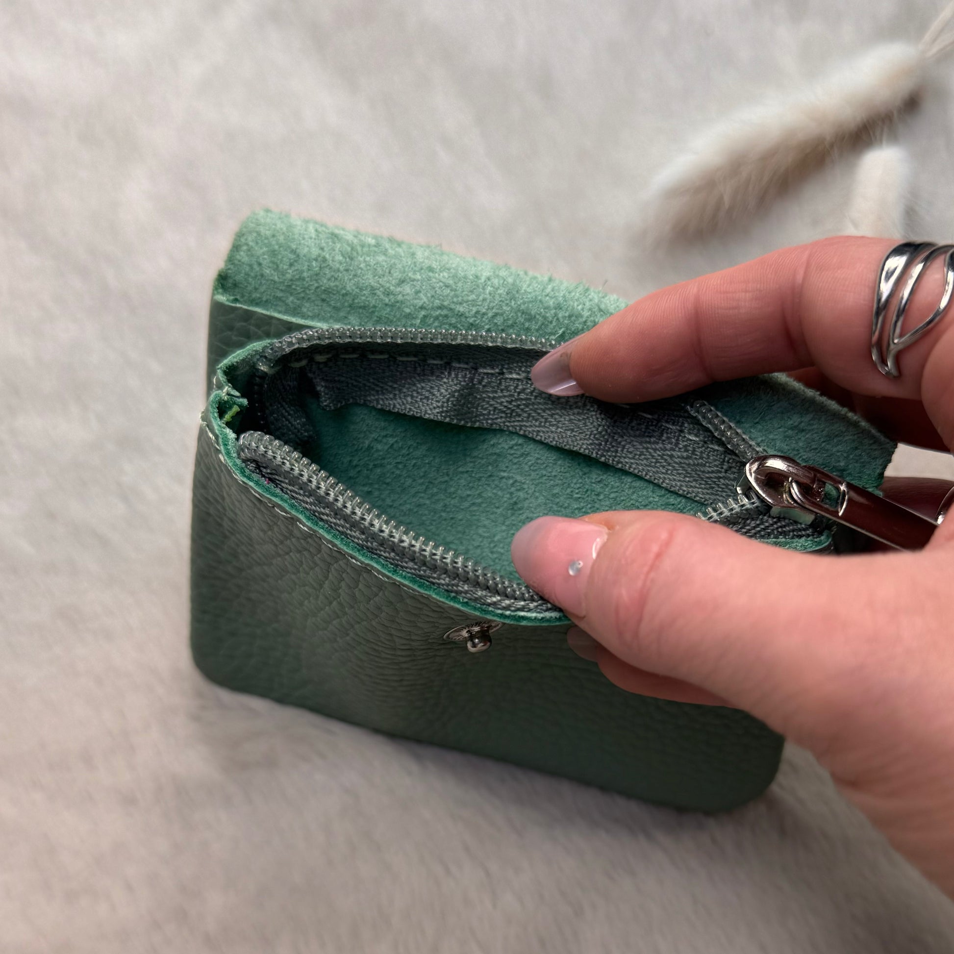 Diese Mini Leder-Portemonnaies kommen in verschiedenen süßen Farben. Sie haben ein praktisches Reißverschluss-Kleingeldfach für Münzen und einen Knopfverschluss, der alles sicher hält. Optimal für den täglichen Einsatz und die wichtigen Kleinigkeiten. ♥