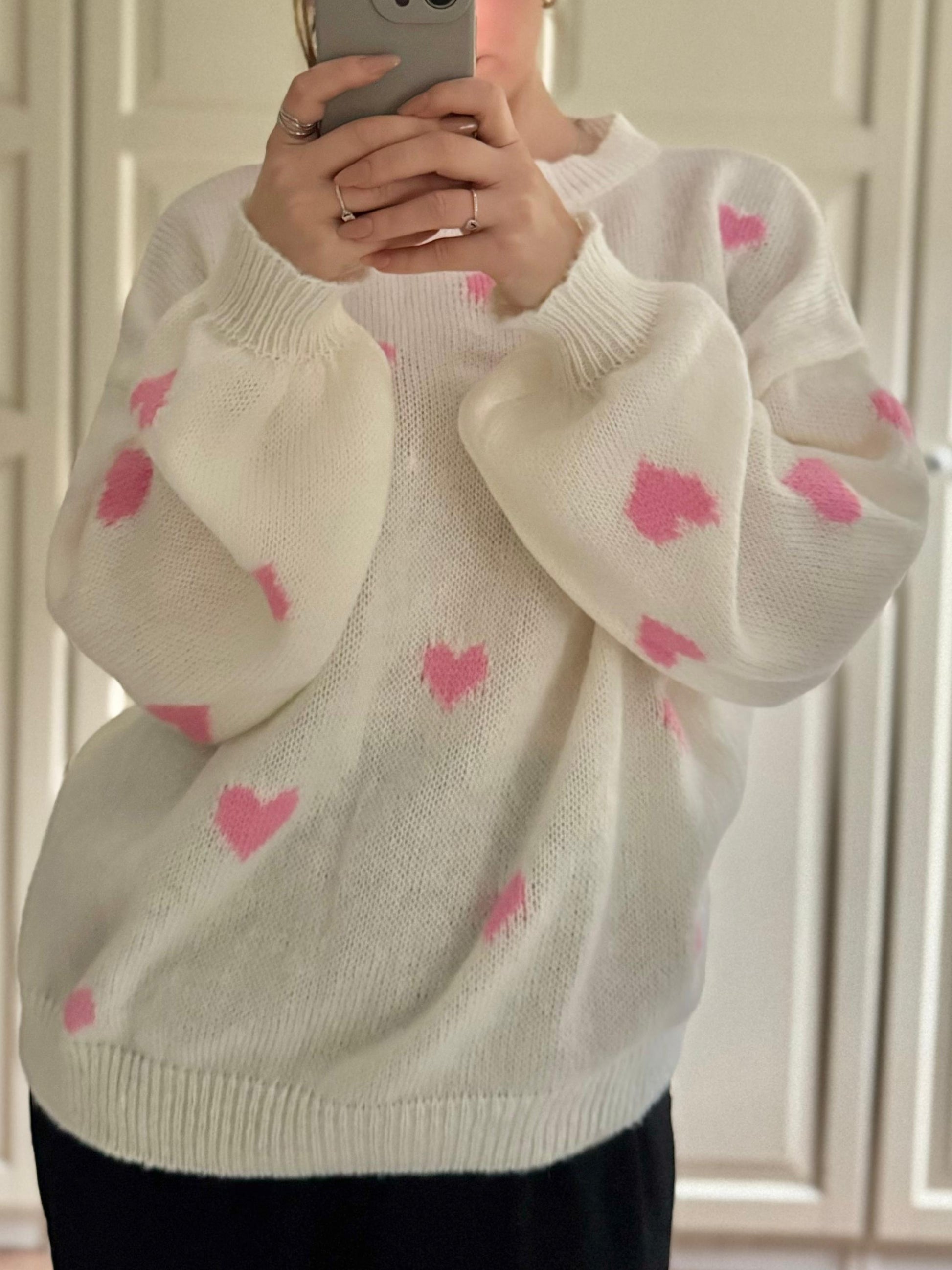 Dieser bezaubernde Pullover mit verspieltem Herzchenmuster vereint Komfort und Stil.