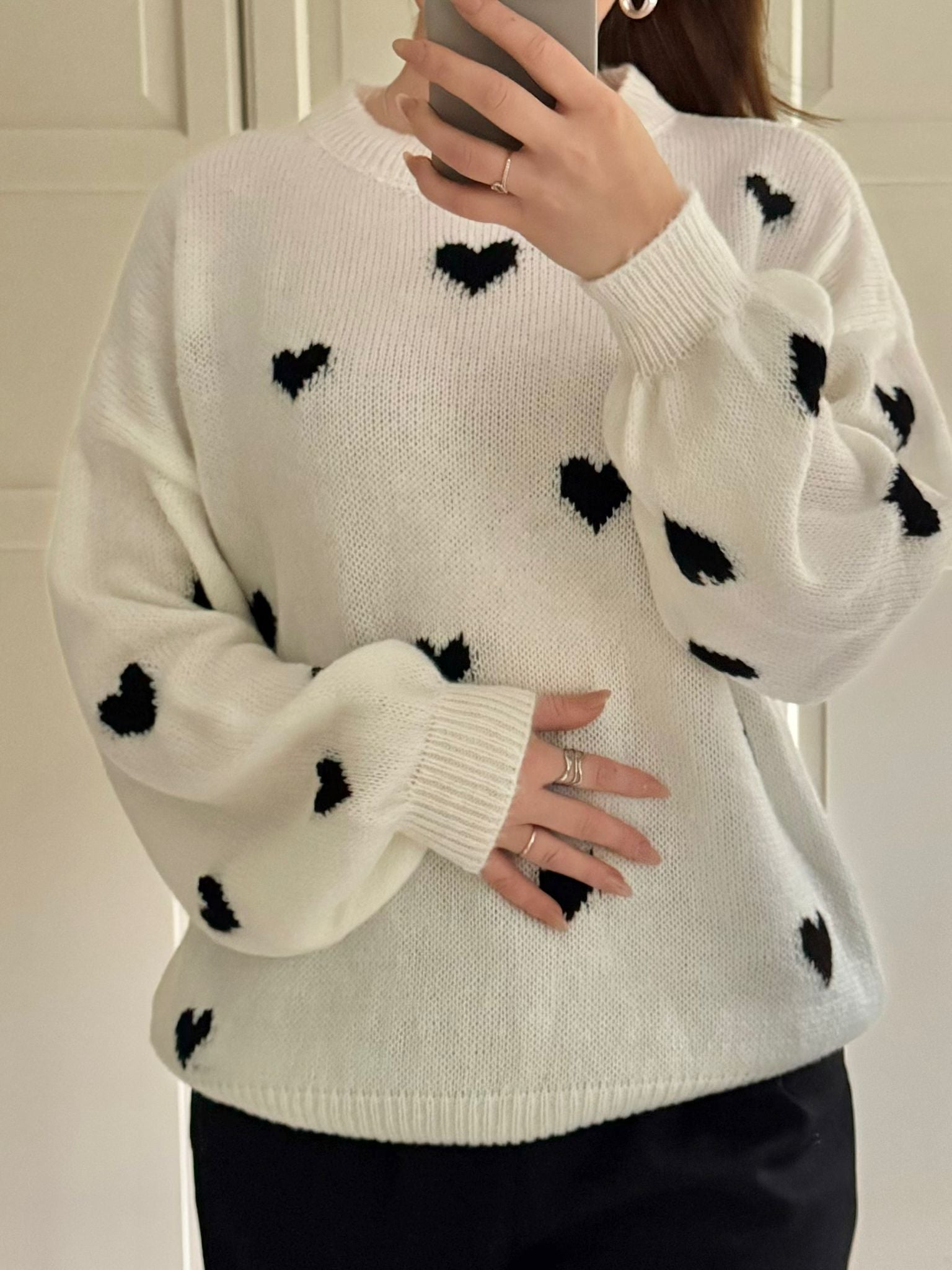 Herzchen Pullover Schwarz/Weiß