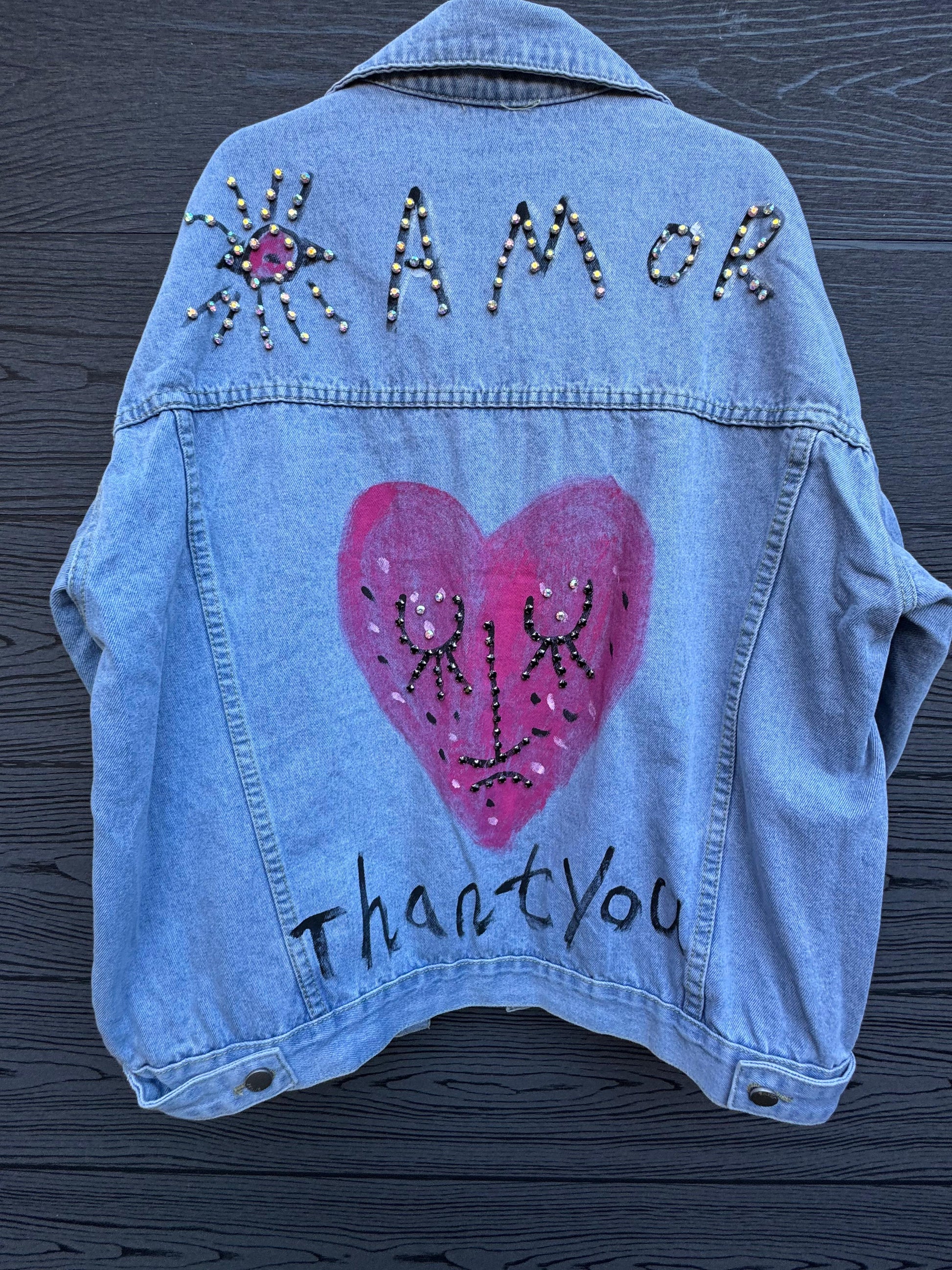 Diese lässige Oversized Jeansjacke ist das perfekte Highlight für jedes Outfit. Mit ihren coolen Prints vollendet sie jeden Look. ♥