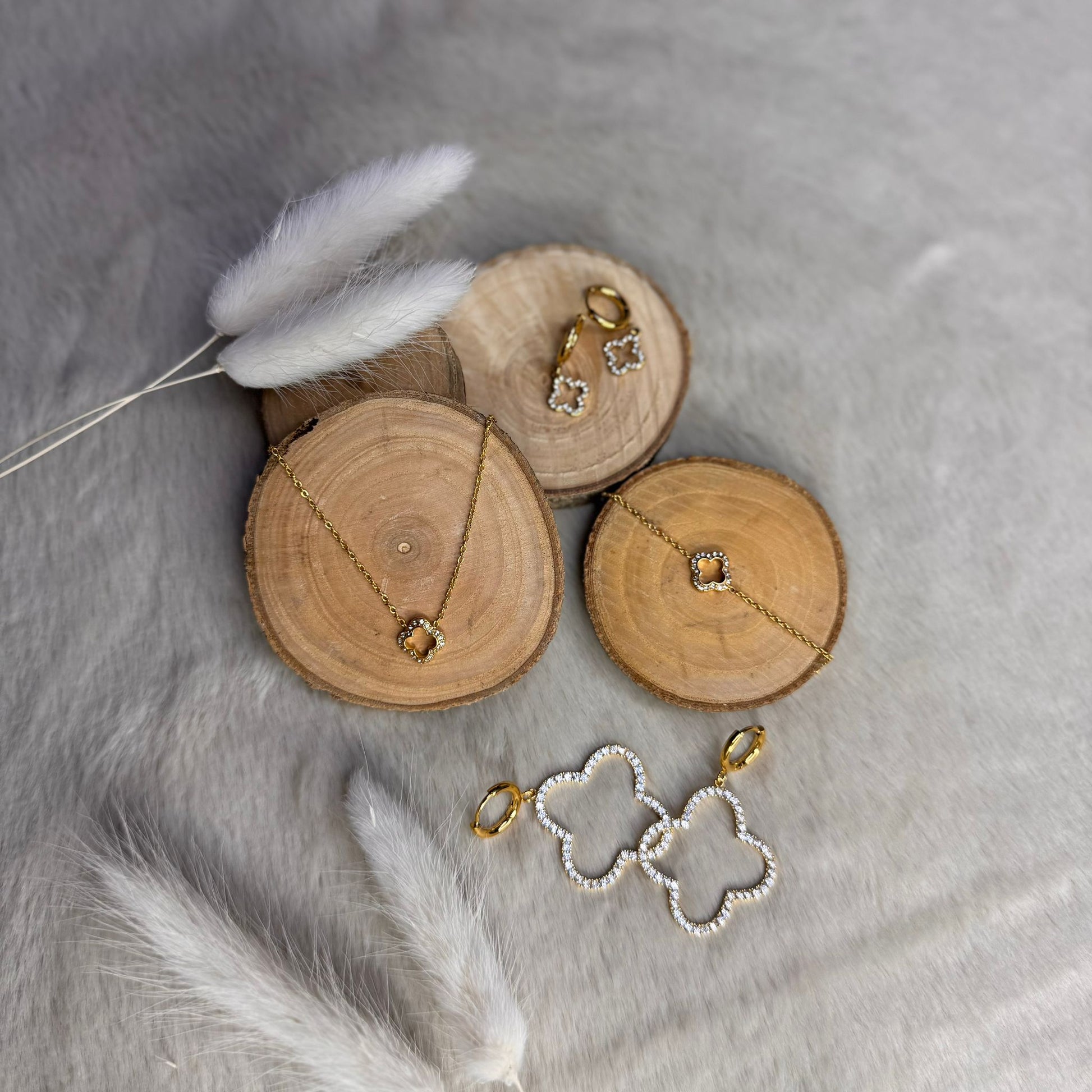 Diese bezaubernden Ohrringe in Gold mit ihrem funkelnden Kleeblatt-Motiv sind aus hochwertigem Edelstahl gefertigt. Sie sind perfekt, um jedem Look einen glamourösen Touch zu verleihen. Diese strahlenden Begleiter bringen nicht nur Eleganz, sondern sorgen auch dafür, dass du dich jeden Tag besonders fühlst! ♥