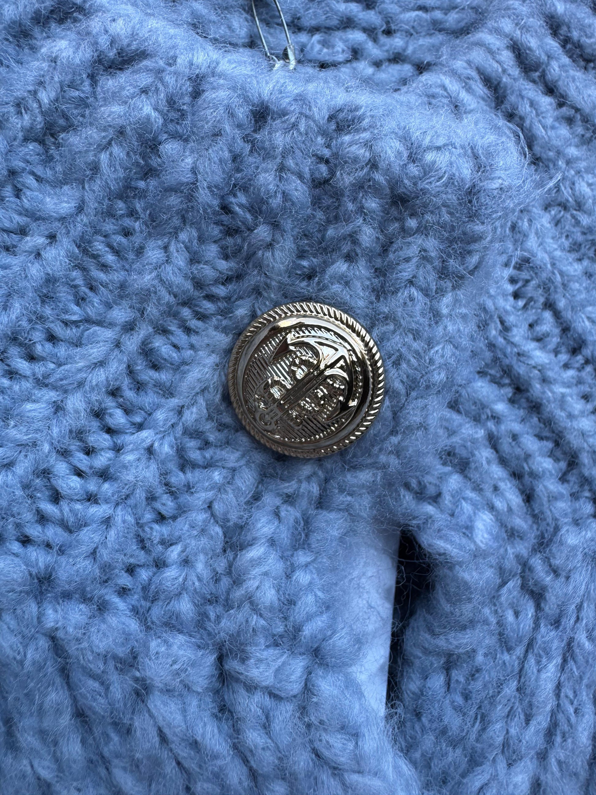 Diese kuschelige Strickjacke begeistert mit ihrem weichen Material und den funkelnden goldenen Knöpfen, die mit liebevollen Ankermotiven verziert sind. Sie verleiht jedem Outfit einen charmanten und eleganten Akzent! ♥